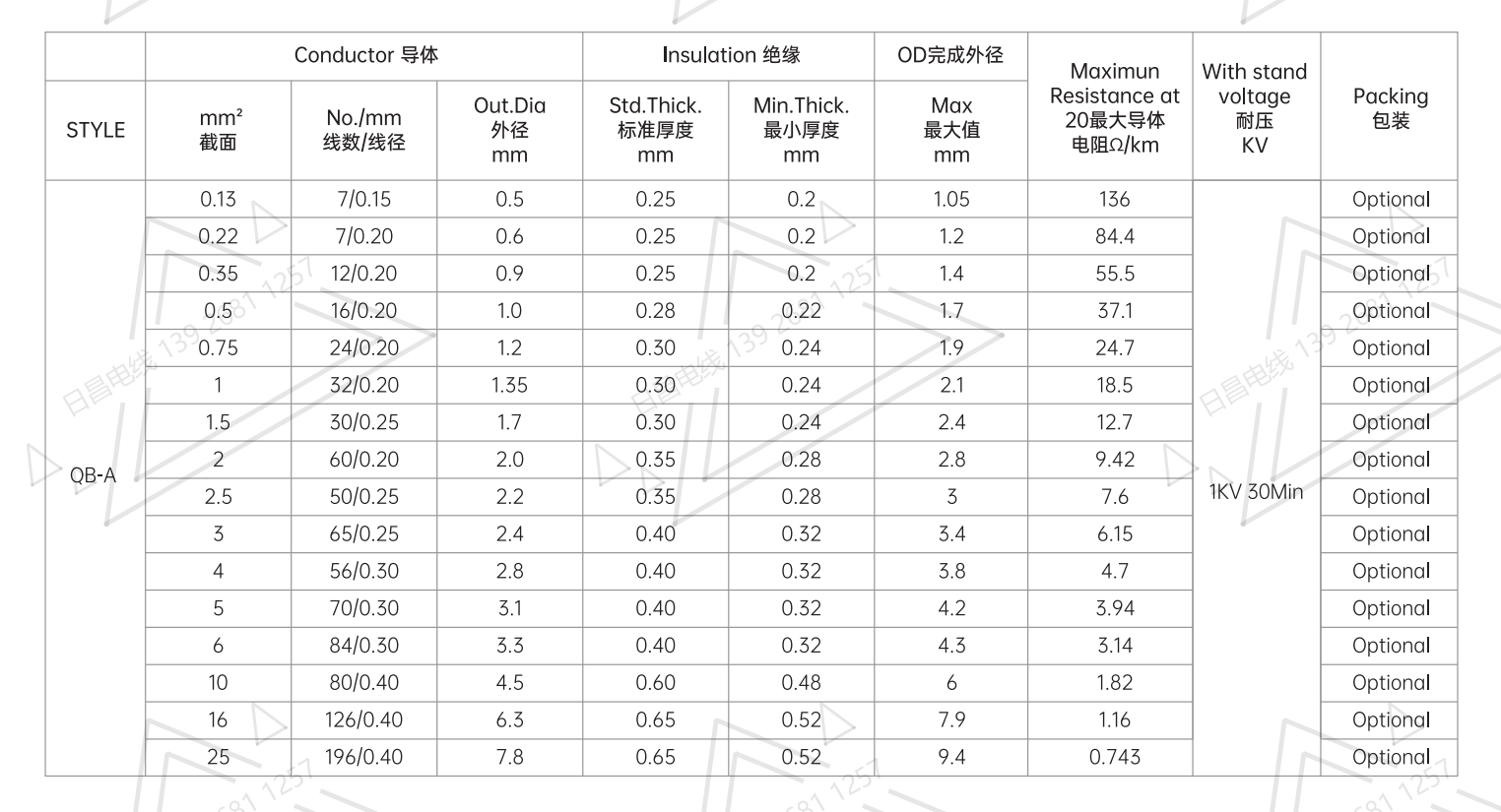 絕   緣: 聚氯乙烯